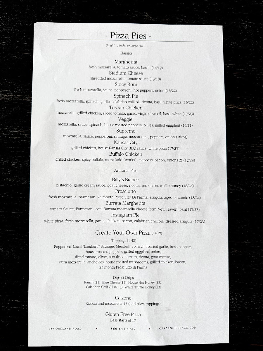 Welcome to Oakland Pizza Co., a charming pizza haven nestled in South Windsor, CT. Here, the fusion of traditional and artisanal pizzas takes center stage. From their classic Supreme Mozzarella to the exquisite Billy's Bianco, each pie is crafted with fresh ingredients and a passion for flavor.